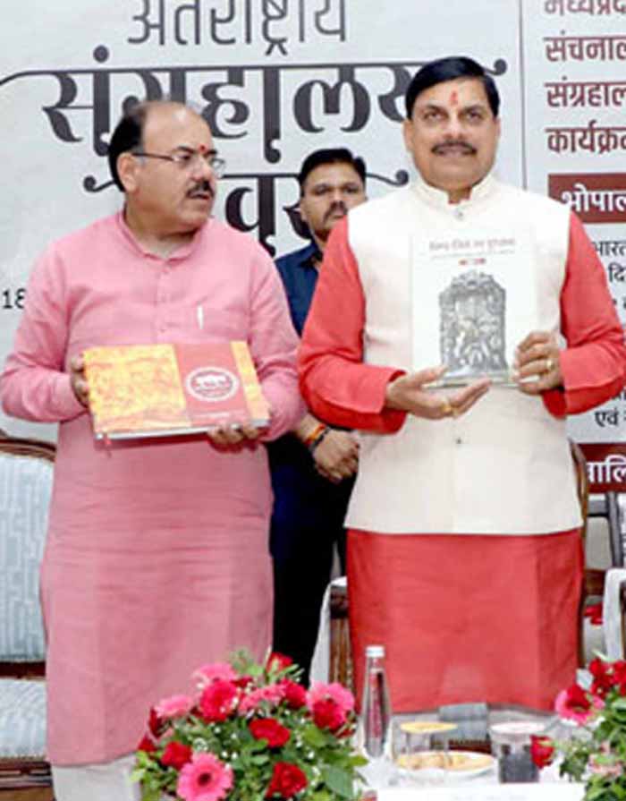 मुख्यमंत्री डॉ. यादव ने मध्यप्रदेश टूरिज्म बोर्ड के त्रैमासिक न्यूज लैटर “ऑफबीट मध्य प्रदेश” के द्वितीय संस्करण का विमोचन किया । मुख्यमंत्री डॉ. यादव ने संचनालय पुरातत्व द्वारा प्रकाशित 11 नवीन पुस्तकों का विमोचन भी किया। इसमें भिंड जिले का पुरातत्व, रतलाम जिले का पुरातत्व, बैतूल जिले का पुरातत्व, बड़वानी जिले का पुरातत्व, कटनी जिले का पुरातत्व, भोपाल के चिचित्र शैलाश्रय, रायसेन के चिचित्र शैलाश्रय, सहित संचनालय का कंजर्वेशन मैनुअल और नियम पुस्तिका शामिल है। कार्यक्रम में प्रमुख सचिव संस्कृति श्री शिव शेखर शुक्ला ने संचालनालय पुरात्व द्वारा जारी गतिविधियों की जानकारी दी।