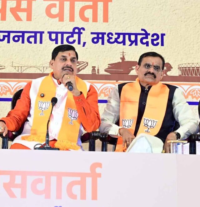 मुख्यमंत्री डॉ. मोहन यादव, भाजपा के प्रदेश अध्यक्ष व सांसद श्री विष्णुदत्त शर्मा ने भाजपा प्रदेश कार्यालय में प्रधानमंत्री श्री नरेन्द्र मोदी जी के नेतृत्व में केन्द्र सरकार के 11 वर्ष पूर्ण होने पर पत्रकार-वार्ता को संबोधित किया। मुख्यमंत्री डॉ. मोहन यादव ने कहा कि 2014 में पद संभालने के बाद से प्रधानमंत्री श्री नरेंद्र मोदी जी देश के लिए हर कीमत चुकाने को तैयार रहे हैं। उन्होंने कई कड़े फैसले लिये और तुष्टिकरण की राजनीति को समाप्त कर दिया। प्रधानमंत्री जी के नेतृत्व में ऐतिहासिक फैसले लिए जो पहले कभी नहीं हुए। जो काम अर्थव्यवस्था के डॉक्टर नहीं कर सके वे काम मोदी जी ने कर दिखाया। आज आर्थिक, सामरिक, कूटनीतिक सहित हर क्षेत्र में भारत का डंका बज रहा है। प्रधानमंत्री जी के नेतृत्व में भारत की लोकतांत्रिक यात्रा पिछले 11 वर्षों में एक स्वर्णिम युग के रूप में दर्ज हो चुकी है। यह वह कालखंड है, जब देश ने युगपुरुष मोदी जी के कुशल, दूरदर्शी और जन-समर्पित नेतृत्व में विकास, समावेशन और आत्मनिर्भरता की नई गाथा लिखी है। सरकार की नीतियां आज 140 करोड़ भारतीयों के जीवन को न सिर्फ आसान बना रही हैं, बल्कि उन्हें नए अवसर, नई उम्मीदें और नया आत्मविश्वास भी दे रही हैं। भारत एक नए आत्मविश्वास के साथ वैश्विक मंच पर अग्रणी भूमिका निभा रहा है। यह देश अब चुनौतियों से पीछे नहीं हटता, बल्कि उन्हें अवसर में बदलता है। भाजपा के प्रदेश अध्यक्ष व सांसद श्री विष्णुदत्त शर्मा ने कहा कि प्रधानमंत्री श्री नरेन्द्र मोदी जी के नेतृत्व में पिछले 11 वर्षों में हमारी सरकार ‘‘सबका साथ, सबका विकास, सबका विश्वास, सबका प्रयास’’ के मंत्र को लेकर आगे बढ़ी है। यह सफलतम 11 साल सेवा, सुशासन और गरीब कल्याण के लिए समर्पित रहे हैं। इसका परिणाम है कि भारत ने जनकल्याण और विकास की दृष्टि से कई ऐतिहासिक उपलब्धियां हासिल की हैं। प्रधानमंत्री जी के नेतृत्व में केंद्र सरकार द्वारा संचालित प्रधानमंत्री उज्ज्वला योजना, प्रधानमंत्री आवास योजना, प्रधानमंत्री गरीब कल्याण अन्न योजना, पीएम उज्जवला योजना जन-धन योजना, आयुष्मान भारत योजना, किसान सम्मान निधि, ड्रोन दीदी, स्व-सहायता समूह जैसे कई कल्याणकारी कदम करोड़ों हितग्राहियों के जीवन बदलने में महत्वपूर्ण साबित हुए हैं। प्रधानमंत्री मोदी जी ने देशवासियों के लिए अपने समर्पण से हर क्षेत्र में भारत को आगे बढ़ाया है और जन-जन में आत्मविश्वास का संचार किया है। बीते 11 वर्षों में सरकार के कामों को समर्थन देने के साथ ही संपूर्ण देश मोदी जी के साथ विकसित भारत निर्माण के पथ पर चल पड़ा है।