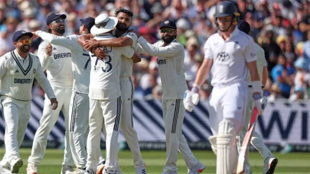 तीसरे दिन का खेल भारतीय गेंदबाजों के ऊपर निर्भर करेगा। वहीं, इंग्लैंड की टीम की उ्म्मीदें ब्रूक और रूट पर निर्भर करेंगी। दूसरे दिन के आखिरी सत्र में आकाश दीप ने अपने दूसरे ही ओवर में लगातार दो गेंदों पर पहले बन डकेट और फिर ऑली पोप को पवेलियन का रास्ता दिखाया और फिर सिराज ने जैक क्रॉली को पवेलियन लौटाया। तीनों ही बल्लेबाज स्लिप में लपके गए। हालांकि, दूसरा दिन भारतीय कप्तान शुभमन गिल के नाम रहा जिन्होंने 269 रनों की पारी खेलते हुए कई रिकॉर्ड ध्वस्त किए।
