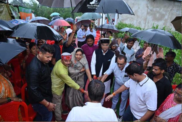 कार्यक्रम के दौरान तेज़ बारिश के बावजूद न तो रहवासियों की उपस्थिति कम हुई और न ही उनका उत्साह। लोग बारिश में भीगते हुए भी मंत्री सारंग का उद्बोधन सुनते रहे।