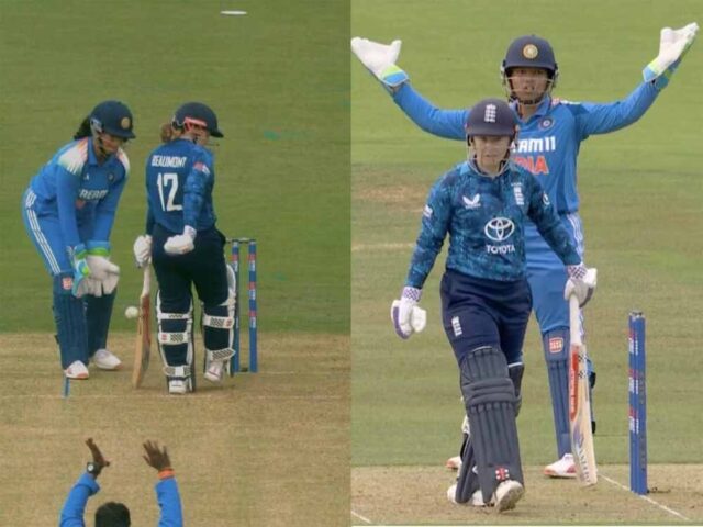 टैमी ब्यूमोंट को ऐसा करता देख भारतीय प्लेयर्स ने अपील की जिसके बाद ऑन फील्ड अंपायर्स ने चर्चा की और फैसला थर्ड अंपायर को सौंप दिया। थर्ड अंपायर ने पाया कि टैमी ब्यूमोंट ने जब गेंद पर पैड लगाने की कोशिश की तब उनका एक पैर क्रीज के अंदर पहुंच चुका था, जिस वजह से उन्हें नॉट आउट करार दिया गया।
