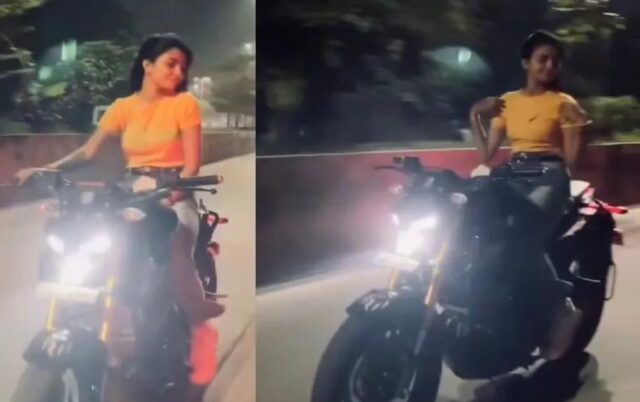 मध्य प्रदेश के इंदौर शहर में एक युवती का चलती बाइक पर खतरनाक स्टंट करने का वीडियो सोशल मीडिया पर तेजी से वायरल हो रहा है। इस वायरल वीडियो में युवती को बिना हेलमेट पहने, तेज रफ्तार में बाइक चलाते हुए दोनों हाथ छोड़कर हवा में स्टंट करते हुए देखा जा रहा है। अब पुलिस ने इस पर गंभीरता दिखाई है।