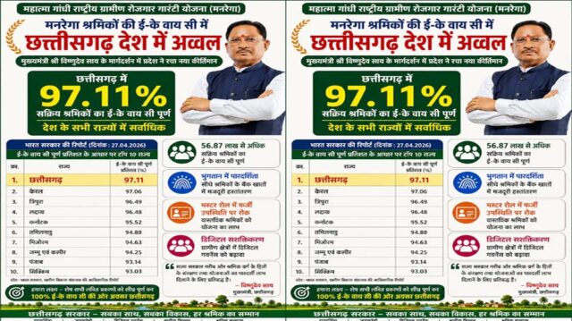 मुख्यमंत्री विष्णुदेव साय के नेतृत्व में छत्तीसगढ़ ने मनरेगा श्रमिकों की ई-केवाईसी में रचा इतिहास